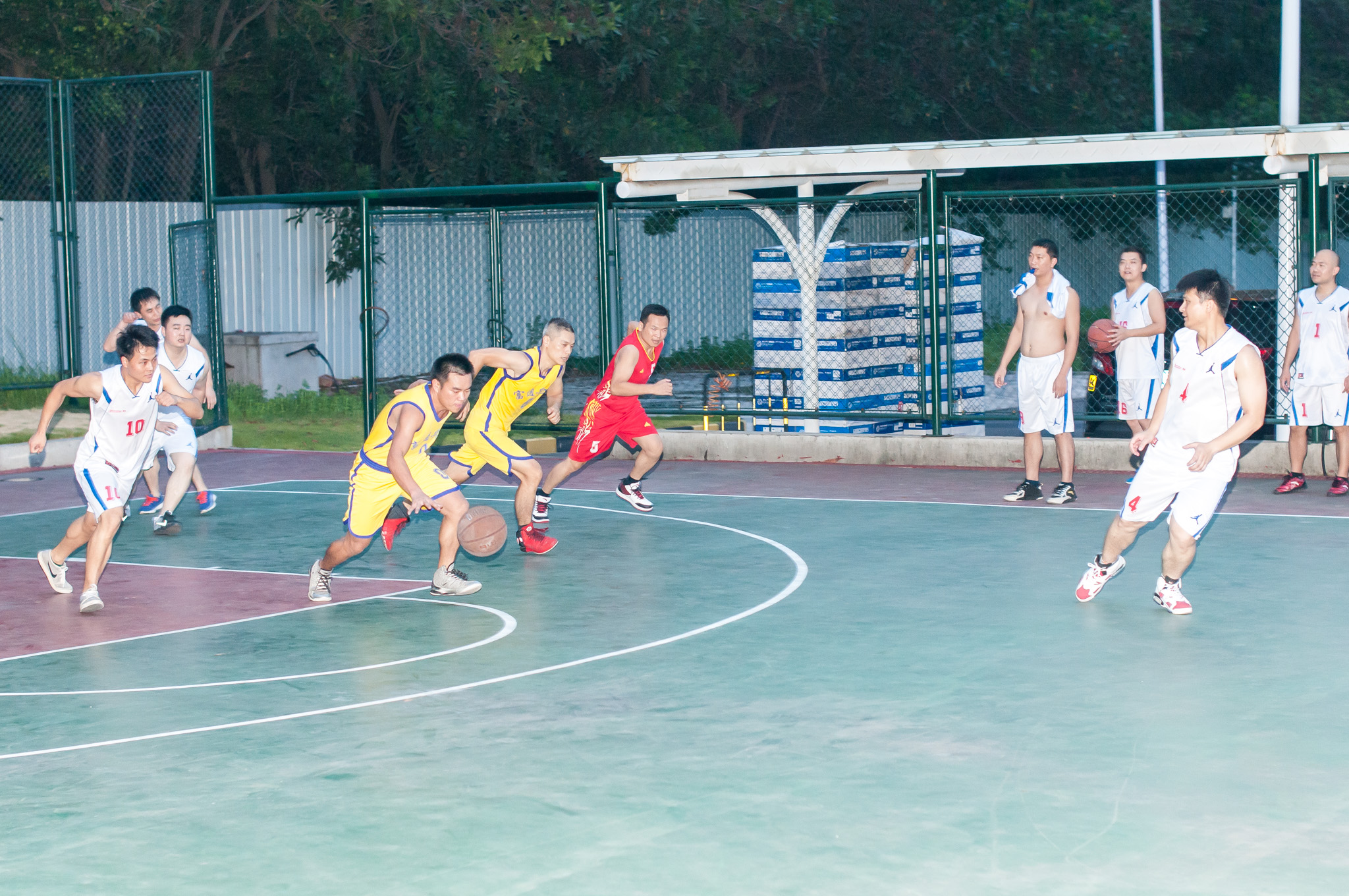 运动员们在团队的良好配合下采取不断进取,每分必争,以致双方比分多次打平,令大家高呼呐喊。其中,三分投球、防守拦球、以及抢球