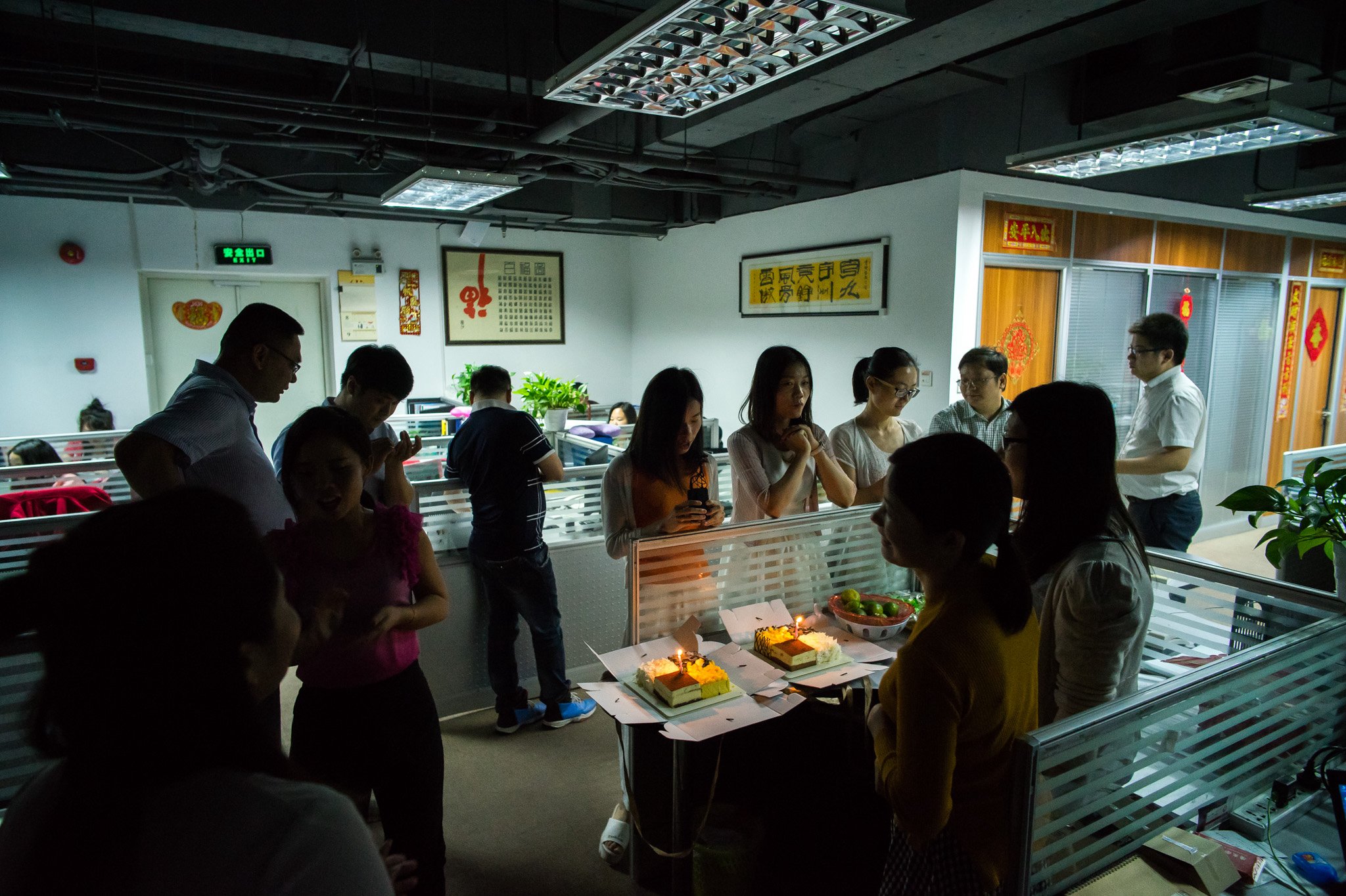生日会上,大家进行着各个环节,唱生日歌、吹蜡烛、切蛋糕,同时公司还为寿星们准备了精美的,生日礼物,虽是一个小小的举动,但是倾注了公司对员工的亲切关爱,
